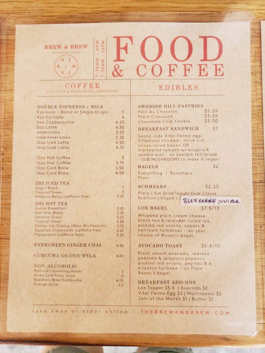 “ PLEASE GET REAL KNIVES AND STOP USING PLASTIC CONTAINERS FOR CREAM CHEESE WHEN EATING IN. Brew & Brew in Austin, Texas, is a hidden gem that perfectly blends the warmth of a coffee shop with the vibrancy of a craft beer bar. Located in the heart of East Austin, this unique establishment caters to both early risers and night owls, making it a versatile spot for any time of day.From the moment you step inside, you're greeted by an inviting atmosphere that strikes the perfect balance between cozy and trendy. The decor is modern yet unpretentious, with an industrial-chic aesthetic featuring exposed brick walls, wooden tables, and plenty of natural light. The ambient lighting in the evening creates a relaxed, welcoming vibe that makes you want to linger. One of the standout features of Brew & Brew is its exceptional coffee. They take their coffee seriously here, offering a rotating selection of beans sourced from some of the best roasters around the country. Whether you're a fan of a strong espresso, a velvety latte, or a meticulously crafted pour-over, you'll find something to satisfy your coffee cravings. The baristas are knowledgeable and passionate, always ready to make recommendations or engage in a conversation about the latest trends in the coffee world. But Brew & Brew is more than just a coffee shop. As the day progresses, it seamlessly transitions into a lively beer bar, boasting an impressive lineup of craft beers on tap. The beer menu is diverse, featuring local favorites and rare finds from breweries across the country. Whether you prefer a hoppy IPA, a rich stout, or a crisp lager, there's always something new and exciting to try. The staff is equally well-versed in their beer offerings, ensuring that you get the perfect pour every time. One of the most appealing aspects of Brew & Brew is its sense of community. It's a place where regulars are greeted by name and newcomers are made to feel right at home. The communal tables encourage conversation and camaraderie, making it easy to strike up a chat with fellow patrons. It's not uncommon to see people working on laptops, catching up with friends, or even hosting small meetings, thanks to the free Wi-Fi and ample seating. The food at Brew & Brew, while not extensive, is thoughtfully curated to complement their beverage offerings. They serve a selection of pastries, sandwiches, and snacks that are perfect for a light breakfast or a midday bite. The avocado toast, in particular, is a crowd favorite, with its generous topping of fresh, creamy avocado on perfectly toasted bread. Events and special nights add another layer of appeal to Brew & Brew. From trivia nights and live music to tap takeovers and coffee cuppings, there's always something happening to keep things interesting. These events foster a sense of local culture and provide an excellent opportunity to mingle with fellow Austinites.The outdoor seating area is another highlight, especially on those beautiful Austin days. It's a great spot to enjoy your drink while soaking up the sun or people-watching. The pet-friendly policy is a bonus for dog owners who don't want to leave their furry friends at home.In terms of location, Brew & Brew is conveniently situated, making it a great stop whether you're exploring East Austin or just passing through. Parking can be a bit of a challenge, but it's well worth the effort. Overall, Brew & Brew offers a unique and delightful experience that goes beyond just serving great coffee and beer. It's a place where you can unwind, connect with others, and enjoy some of the best beverages Austin has to offer. Whether you're a coffee connoisseur, a beer enthusiast, or simply someone looking for a welcoming spot to relax, Brew & Brew is sure to exceed your expectations. ”